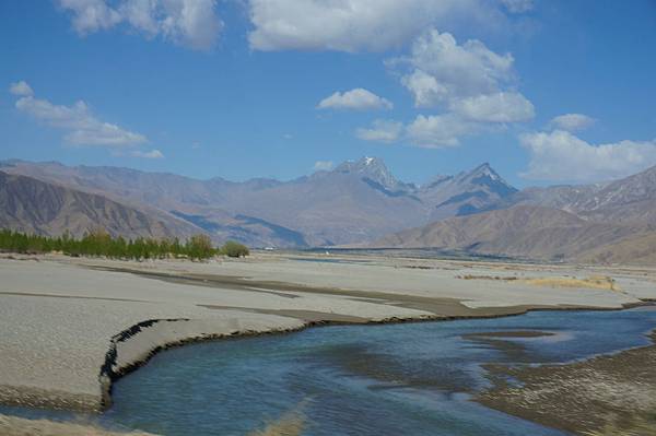 出了城外整個風景完全改變,隨即可看到連綿不絕的山峰就在兩側,而就在不久後即到達曲水縣。曲水縣是拉薩河匯入雅魯藏布江之地,它是西藏的聖河,雖然不見其氣勢磅礡,河水滾滾奔騰的樣子,但我還是對它心生尊敬。