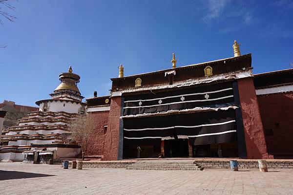 白居寺,是藏傳佛教少數不同派別共存的寺院,其中最讓我感興趣的,便是那大門旁的六道輪迴圖,導遊多吉很清楚地講解其中包含的意義,讓我們對輪迴來生的觀念增添了幾分知識;寺廟旁的十萬佛塔,因為殿內有十萬多尊佛像和近千幅壁畫而得名,只可惜來的太晚了,沒有機會入殿參觀。