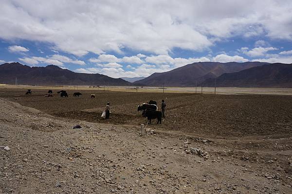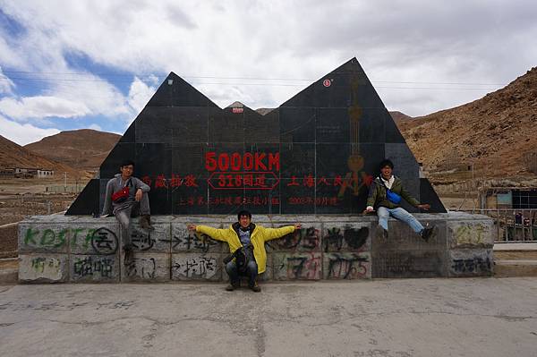 西藏除了氣候變化很大之外,地形也多有不同。今早由江孜到日喀則是長達一百多公里的平原,也造就了日喀則為世界青稞之鄉的名號;而日喀則到定日,又是另外一種風貌,地表像是月球表面般,光禿禿的一片,偶爾見到放牧的人群,就在吉普車行駛到拉孜,看到這318國道5000KM的紀念碑,才發覺這趟旅程已走了五千公里,這一路走來,只能用"驚奇"兩個字形容。