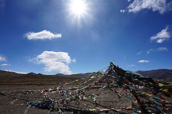 嘉措拉山,海拔5248公尺,進入這裡後,就是珠穆朗瑪峰自然保護區了,看這飄揚的五色經幡,還有望不見的公路底,我知道,珠峰已經不遠了,心中雖然興奮,但是不能太激動,不然,在這高海拔的地區,高山症可能隨時會來~